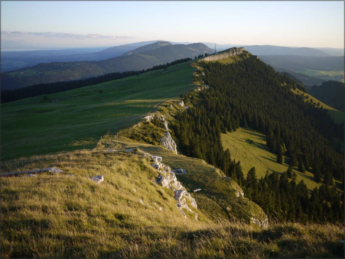 Du Chasseron on suit la crête jusqu'à Petites Roches, et ensuite c'est une très belle descente jusque sur les hauts de Ste Croix.