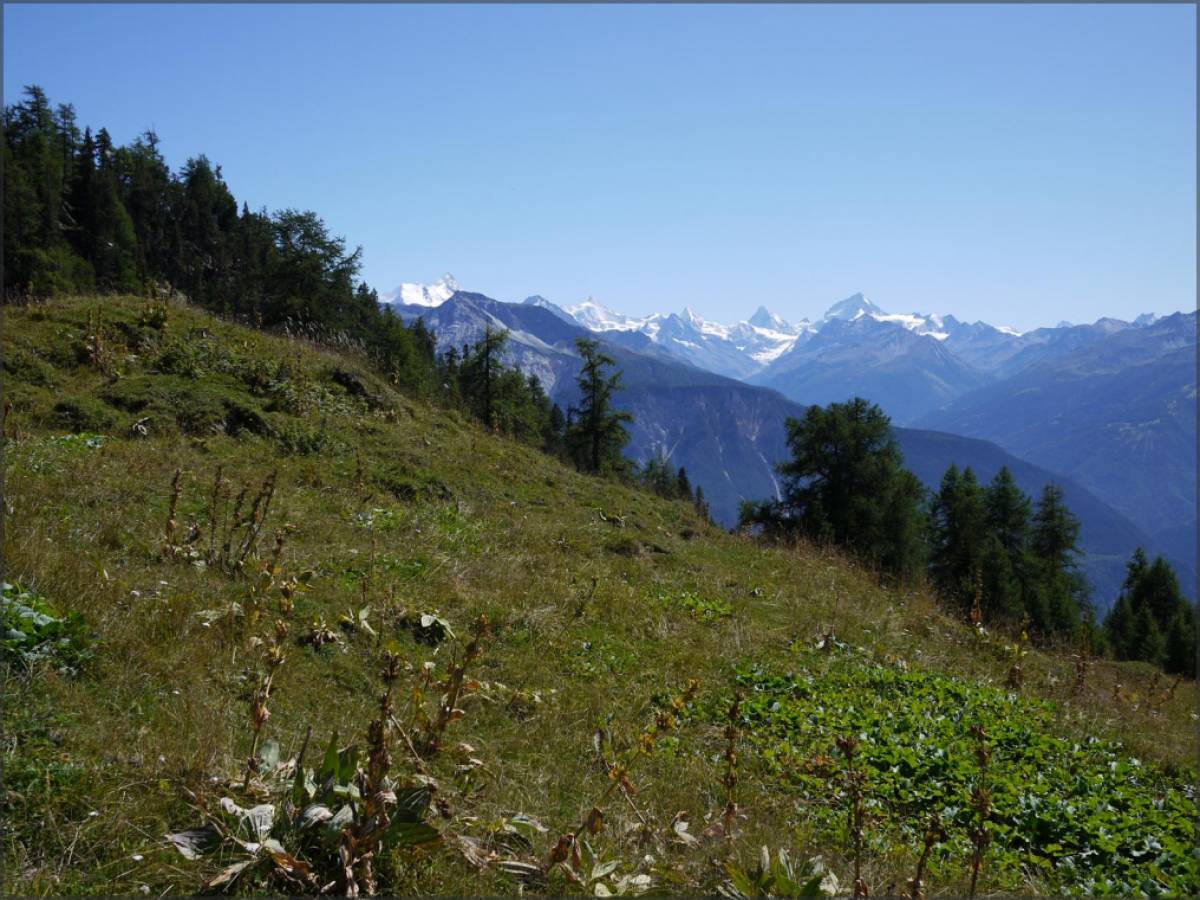 Une fois le sentier atteint (au point 2121), un dernier petit effort pour atteindre Planigrächti, un alpage fort à propos qui vous permettra de vous reposer en toute tranquilité et avec une magnifique vue sur le Cervin, la Pointe Dufour, etc...