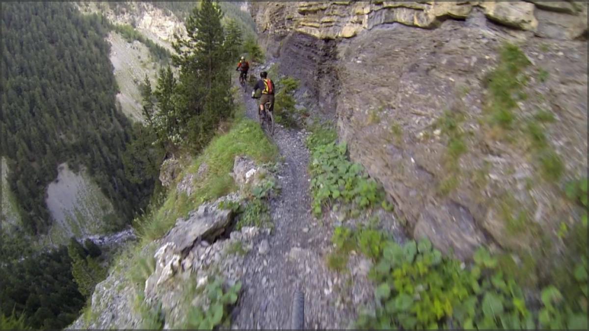 Au départ c'est une piste, mais rapidement, c'est un single sinueux et joueur qui vous y amène. Au-dessous des Rousses, certains passages se font à flanc de falaise et sont particulièrement vertigineux, alors même si cela semble techniquement facile, on évite de jouer au kéké et on pousse...