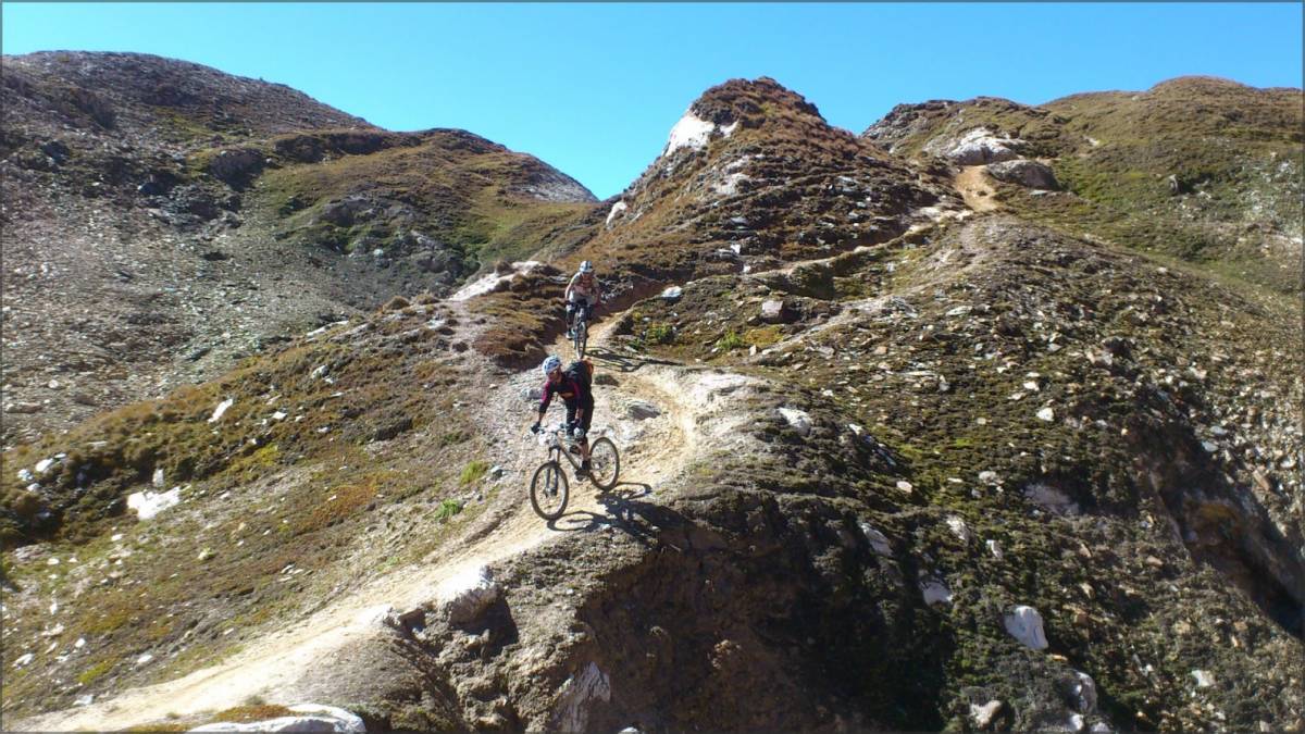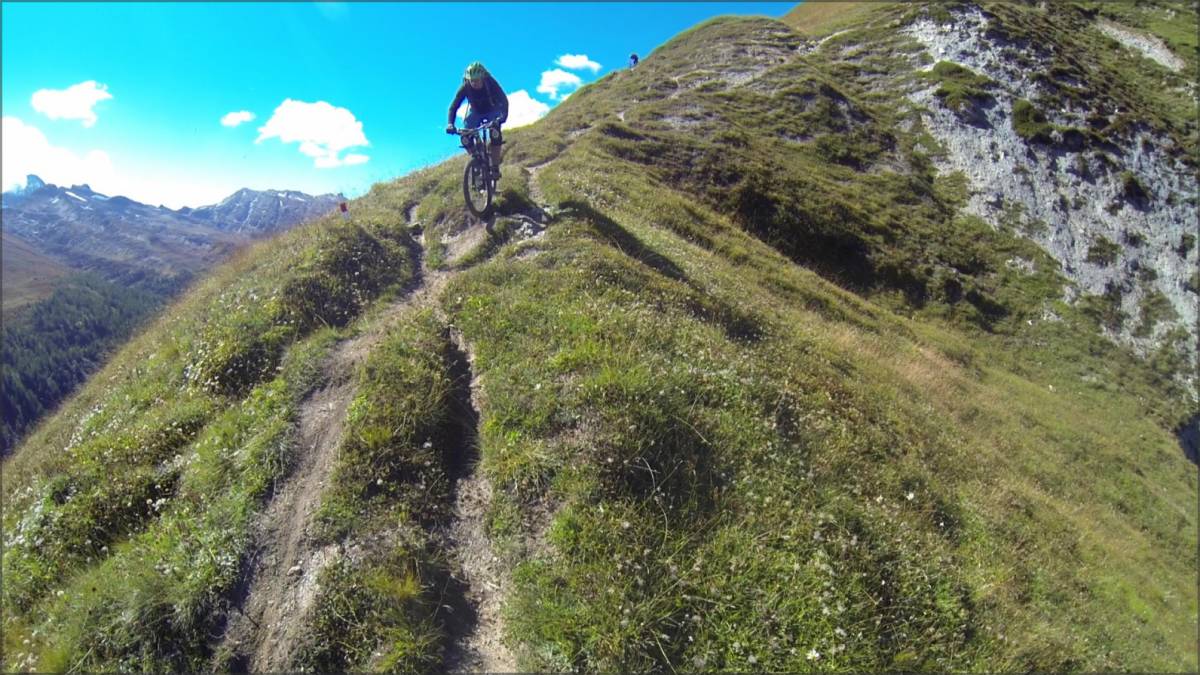 De Bärg, on emprunte le sentier qui traverse à flanc de coteaux (bien roulant, mais parsemé de quelques petits coups de cul) et qui permet de récupérer une piste qui elle-même nous amène au sentier joueur qui descend sur Binnega, Wasen puis Z'Brigg.