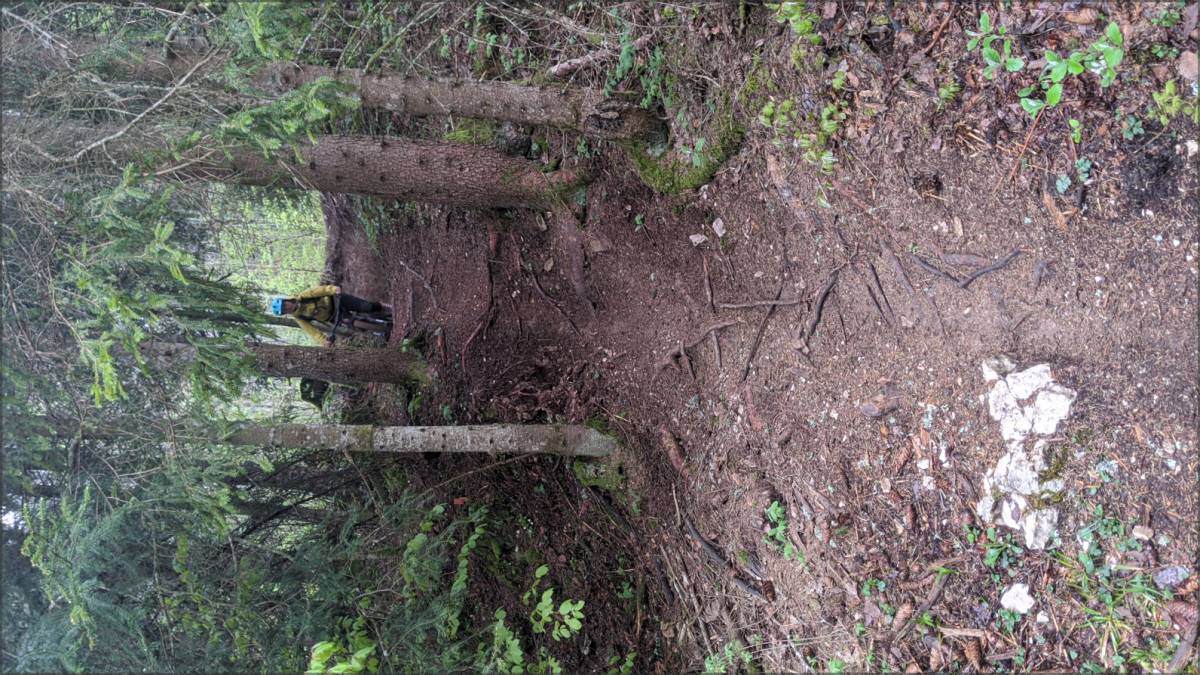 Le tracé a été aménagé dans la forêt le long de l'ancienne piste de ski, il convient de bien suivre (chercher...) le balisage orange fluo au sol ou sur les cailloux et souches d'arbres.